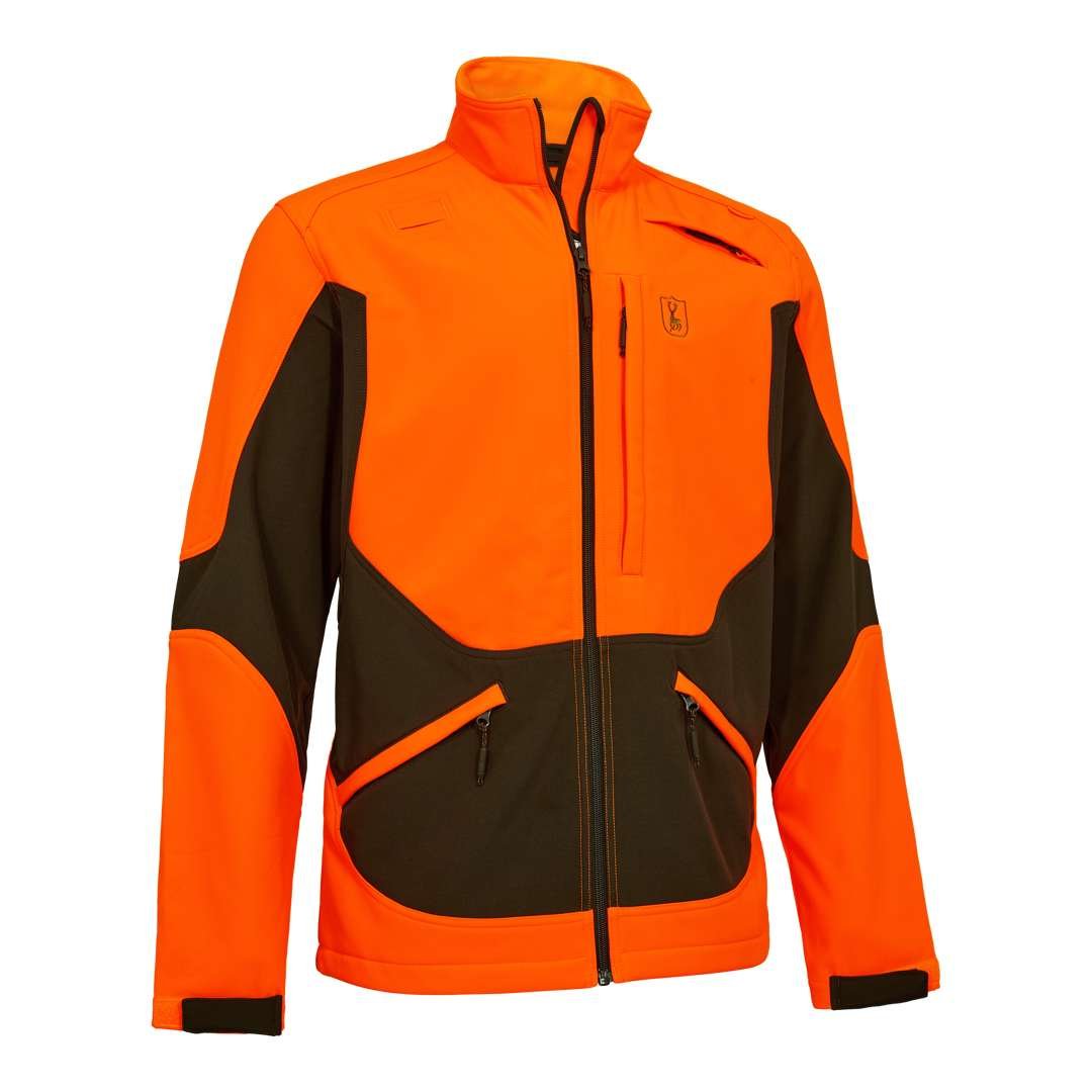 Die Rogaland Softshell Jacke ist für Bewegungsfreiheit und Sichtbarkeit bei aktiven Jagden fixiert. Das wasserabweisende Stretchmaterial mit atmungsaktiven Eigenschaften ermöglicht volle Bewegungsfreiheit in wechselndem Gelände. Mehrere Reißverschlusstaschen bieten sicheren Stauraum, darunter eine Funkgerättasche und eine tiefe Brusttasche für wichtige Ausrüstung. Zusätzlich verfügt die Jacke über eine Hasentasche am Rücken, verstellbare Ärmelabschlüsse mit Klettverschluss sowie eine spezielle Befestigungsschlaufe für Funkgeräte. Die Jacke ist in gut sichtbarem Orange gefertigt und CE-marked und PPE CAT II certified (EN 17353:2020), um die Sicherheit zu erhöhen.