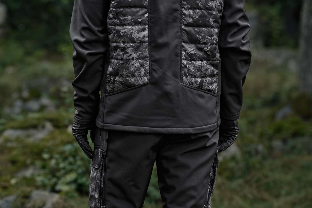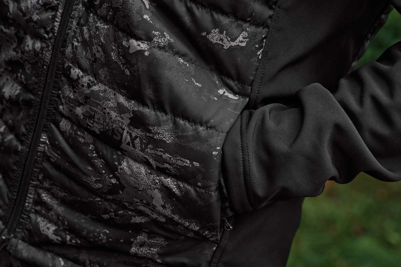 Die NOCTYX Camo Hybrid Jacke in AXIS MSP® Black/Black wurde für die Jagd in der Dämmerung, bei Nacht und in dichtem Bewuchs entwickelt – dort, wo Tarnung, Beweglichkeit und Leistung nahtlos zusammenspielen müssen. Das AXIS MSP® Black Tarnmuster reduziert die visuelle Kontur bei wenig Licht und unterstützt ein unauffälliges Vorgehen in dunklen Umgebungen. Die leichte Thermo Poly Shield™ Isolierung sorgt für effektive Wärmeleistung bei hoher Atmungsaktivität, ohne unnötig aufzutragen. In Kombination mit dem flexiblen ArcStretch® Gewebe bietet die Jacke volle Bewegungsfreiheit für aktive Jagdformen.. Der ergonomische Schnitt und der elastische Bund halten die Jacke körpernah, minimieren das Hängenbleiben im Dickicht und gewährleisten uneingeschränkte Beweglichkeit. Funktionale Details wie leicht erreichbare obere Taschen, großzügige Oberschenkeltaschen mit Reißverschluss für sichere Aufbewahrung sowie strategisch platzierte Belüftungsreißverschlüsse zur schnellen Wärmeableitung bei hoher Aktivität runden das durchdachte Design ab. Ob in Bewegung oder im Ansitz – die NOCTYX Hybrid Jacke passt sich den Anforderungen der Jagd an und unterstützt konzentriertes Handeln unter anspruchsvollen Bedingungen.