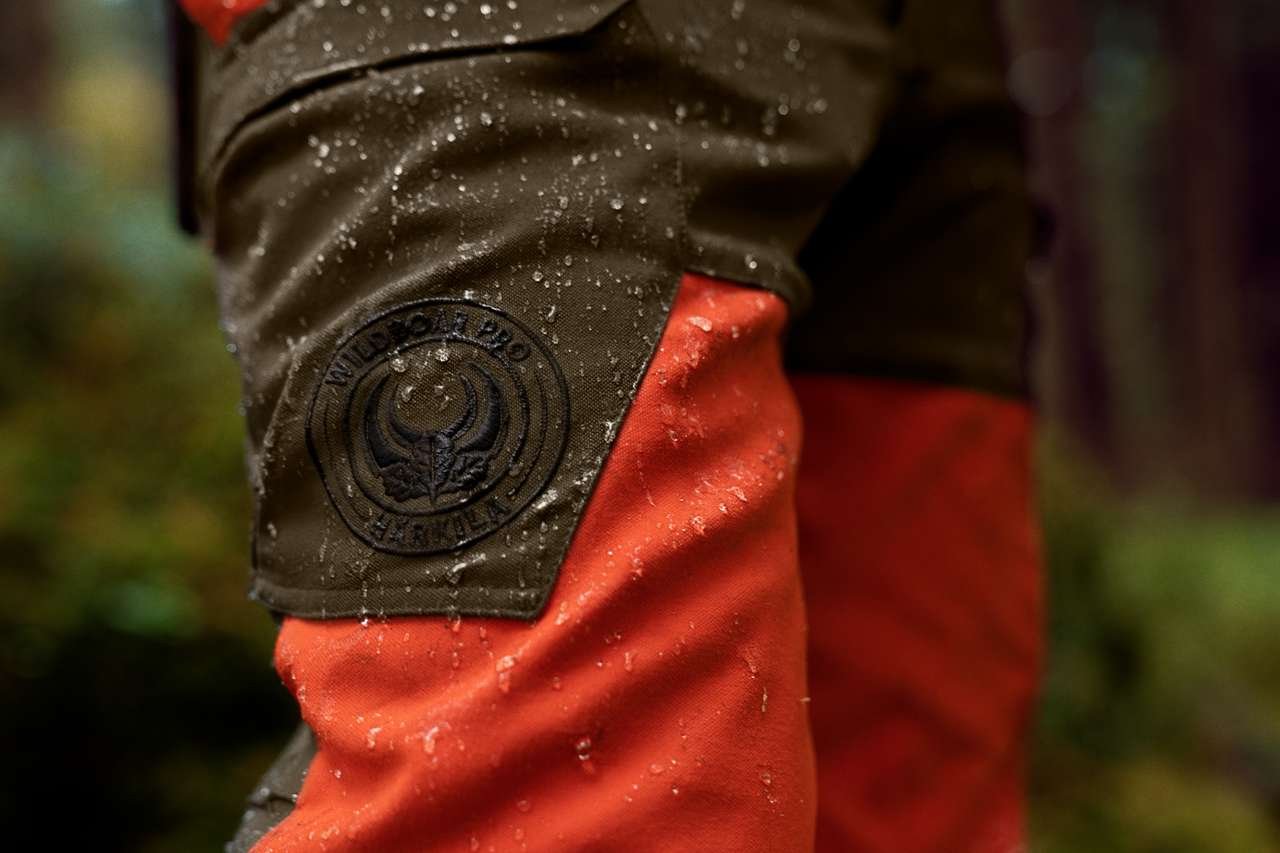 Die Wildboar Pro Hose ist aus einem kräftigen, strapazierfähigen sowie wind-, wasser- und schmutzabweisenden Canvasmaterial namens AirTechTM gefertigt. An der gesamten Vorderseite sowie vom Gesäß bis zu den Kniekehlen ist die Hose mit einem speziellen schützenden Strickmaterial aus kräftigem Polyethylen ausgestattet. Diesem Feature ist es zu verdanken, dass die Hose von den deutschen Prüfstellen für Land- und Forsttechnik KWF (Das Kuratorium für Waldarbeit und Forsttechnik) und DPLF (Deutsche Prüf- und Zertifizierungsstelle für Land- und Forsttechnik) zertifiziert und als Schutzprodukt für die Schwarzwildjagd bestätigt wurde. Darüber hinaus ist die Hose mit einer wind- und wasserdichten GORE-TEX®-Membran ausgestattet, die eine hohe Wassersäule aufweist und gleichzeitig extrem strapazierfähig und atmungsaktiv ist.