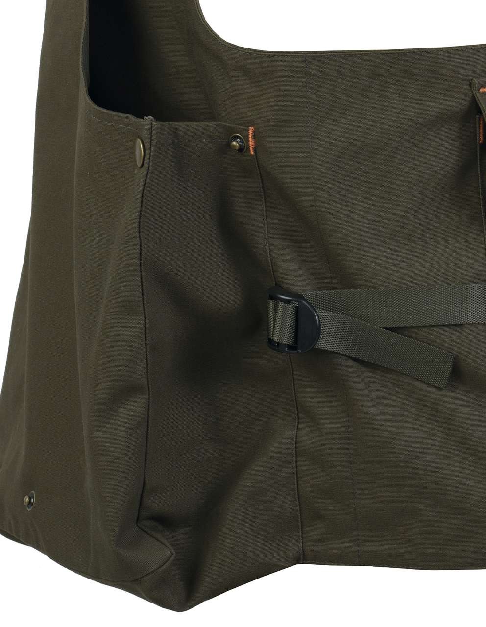 Gefertigt aus widerstandsfähigem Baumwollmischgewebe. Ideal, um alles Notwendige problemlos zu transportieren. Schwarze reflektierende Streifen und einziehbarer orangefarbener Einsatz am Rücken. Die Weste ist so ausgelegt, dass sie über Kleidungsstücken jeder Art getragen werden kann, je nach Klimabedingungen. Große Cargo-Taschen mit Patronenschlaufen und Load System: Der Schlaufenverschluss ermöglicht den bequemen Zugriff auf die Cargo-Taschen und hält diese offen. Große Hasentasche am Rücken. Innentasche mit Reißverschluss auf der Rückseite und Schlauchführung für Trinkblase bis ca. 3 l (nicht inbegriffen). 2 Innentaschen mit Reißverschluss.Außen 1: 65% Polyester, 35% Baumwolle. Außen 2: 100% Polyester. Futter 1: 100% Polyester.