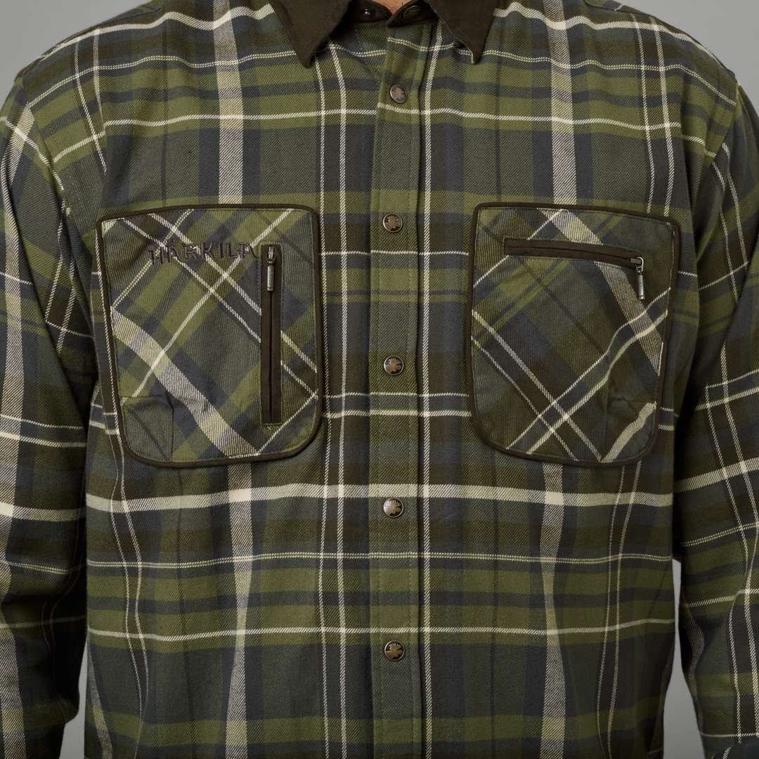 Das Pajala Hemd ist ein herrlich weiches, aber gleichzeitig strapazierfähiges kariertes Flanellhemd mit Verstärkungen an Ellbogen, Kragen und Manschetten sowie praktischen Taschen für die Jagd und Outdoor-Aktivitäten. Das Hemd ist weit geschnitten.